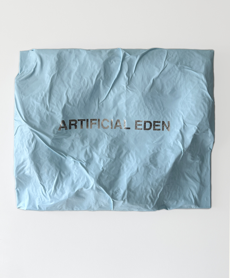 Polyester, chickenwire, newspaper, tape, wood, foam, acrylic and chrome enamel on canvas