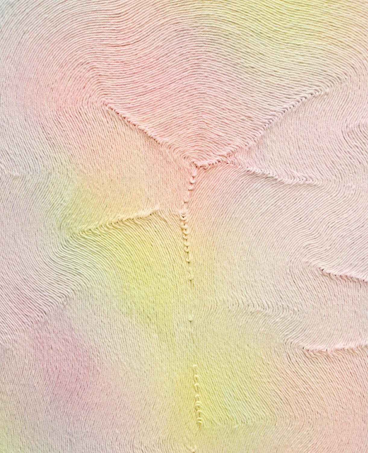 Field of Immanence begins from the outline of the artist’s earlier sculptures and unfolds through a slow, meditative process. Cotton twine, applied by hand and simple tools in near three-dimensional patterns, accumulates through repetition and touch. The work rejects a fixed form, allowing structure to arise from material behaviour, embodied labour, and intuition.