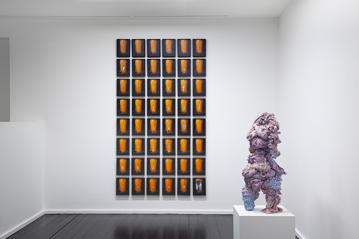 Lana Haga (b. 1986) uses industrial surplus materials, plastics and textiles in her sculptures, addressing issues of environmentally harmful overproduction and the threat of ecosystem collapse.